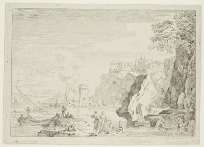 River Scene with Bathers, 18th c...