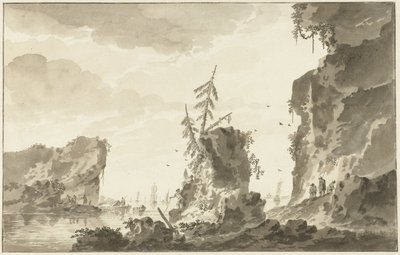 Rotsachtige kust met schepen en ...