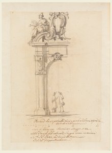 Drawing, An escutcheon, a trophy...