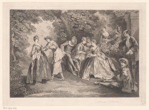 Nicolas Lancret (1690 - 1743) był, wraz ze swoim dawnym kolegą i przyjacielem Jean-Antoine Watteau, jednym z najważniejszych malarzy francuskiego rokoka. Lancret tak bardzo podziwiał Watteau, że w 1712 roku, po około czterech latach terminowania, opuścił swojego pierwszego mistrza Pierre'a d'Ulin i dołączył do nauczyciela Watteau - Claude Gillot. Gillot, jeden ze współtwórców rokoka, wywarł duży wpływ na późniejszą twórczość młodego Lancreta. Kolejną ważną rolę odegrał starszy o sześć lat Watteau. Obu malarzy łączyła bardzo bliska przyjaźń. Więź ta została jednak zerwana, gdy Lancret zaprezentował dwa swoje dzieła na wystawie Exposition de la Jeunesse na Place Dauphine. Obrazy te zostały dobrze przyjęte i miały stanowić podwaliny pod jego późniejszą sławę. Ale ponieważ wyglądały łudząco podobnie do stylu Watteau, wielu mylnie gratulowało jemu, a nie Lancretowi.