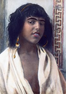 Woman in combed up hairstyle wit...