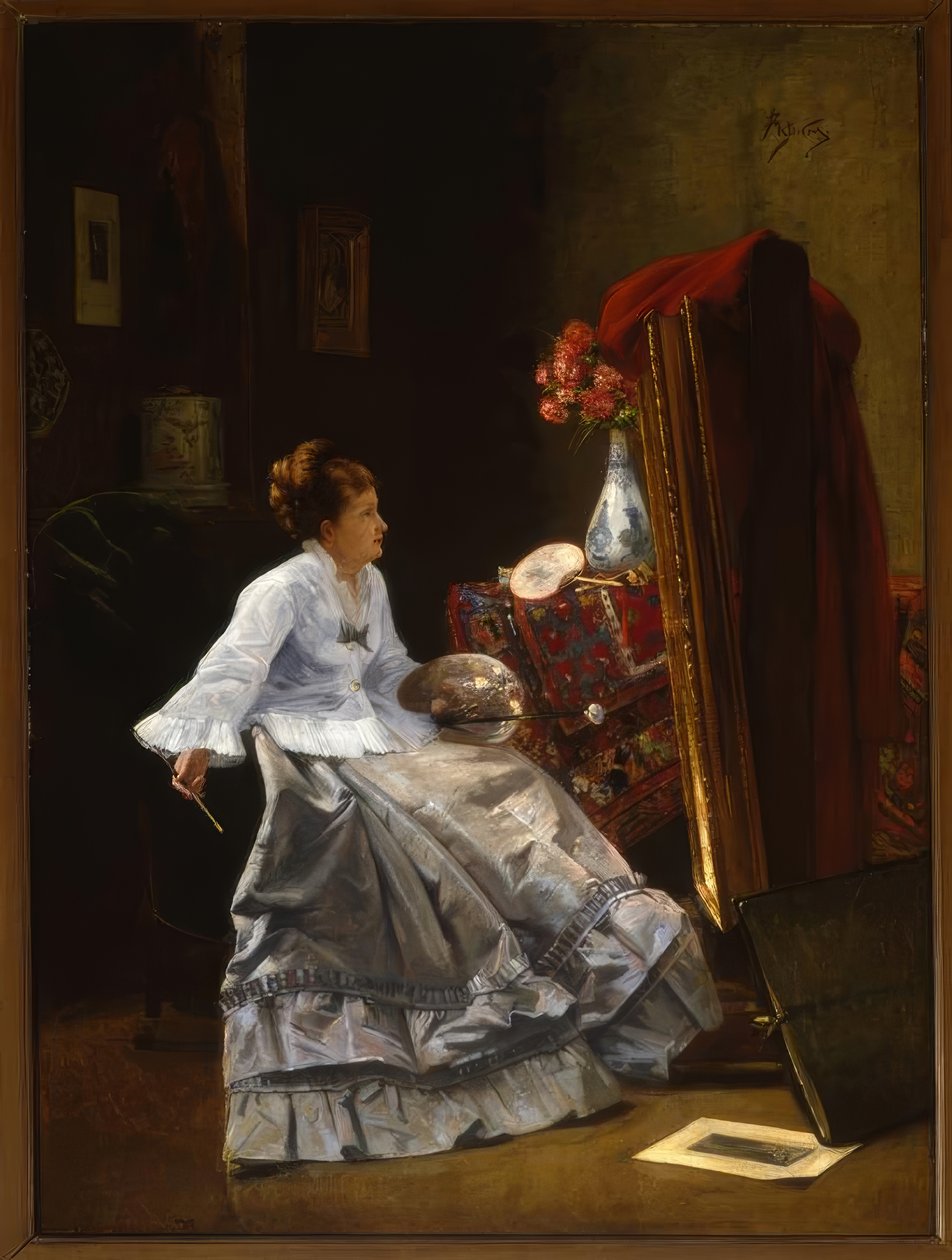 Przypisywany A.Stevens, Pani przy sztalugach / Obraz(A.Stevens zugeschrieben, Dame an ihrer Staffelei / Gemälde)Alfred Emile Stevens |
