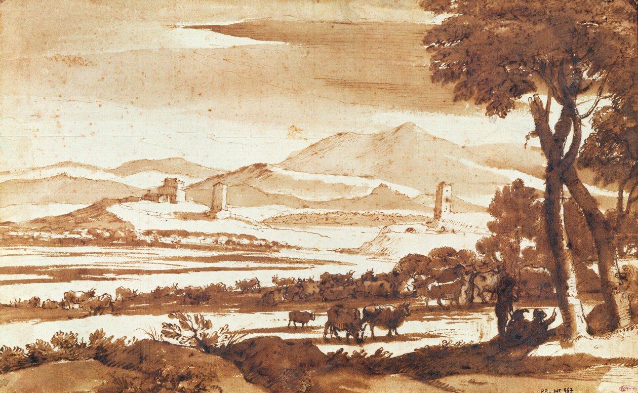 Krajobraz wsi rzymskiej, 1643 (pióro i tusz na papierze)(Landscape of the Roman Countryside, 1643 (pen and ink wash on paper))Claude Lorrain |