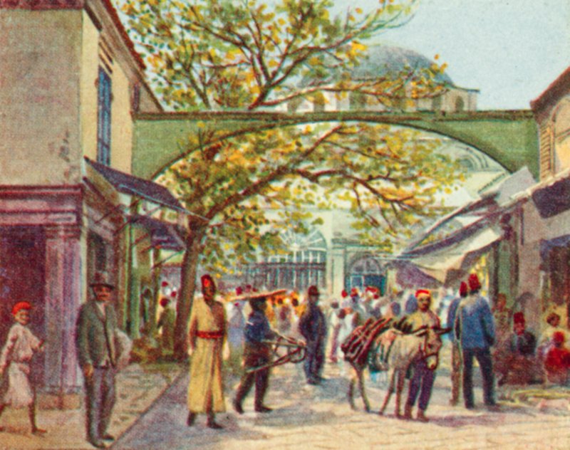Smyrna, turecki bazar (kolorowa litografia)(Smyrna, A Turkish bazaar (colour litho))English School |