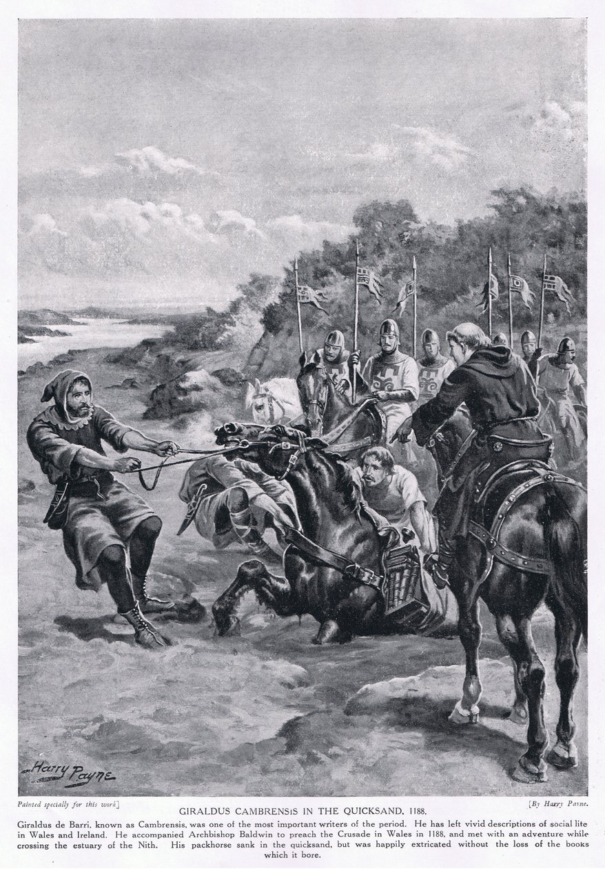 Girladus Cambrensis w ruchomych piaskach AD1188, lata 20.(Girladus Cambrensis in the quicksand AD1188, 1920's )Henry A. Payne |