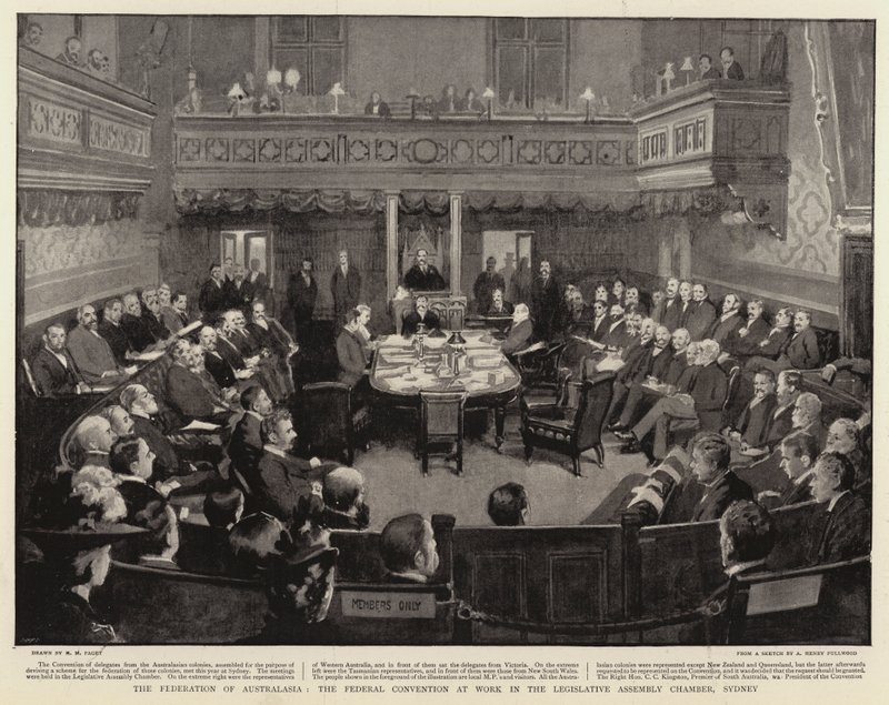 Federacja Australijska, Konwent Federalny podczas pracy w Izbie Zgromadzenia Ustawodawczego, Sydney(The Federation of Australasia, the Federal Convention at Work in the Legislative Assembly Chamber, Sydney )Henry Marriott Paget |