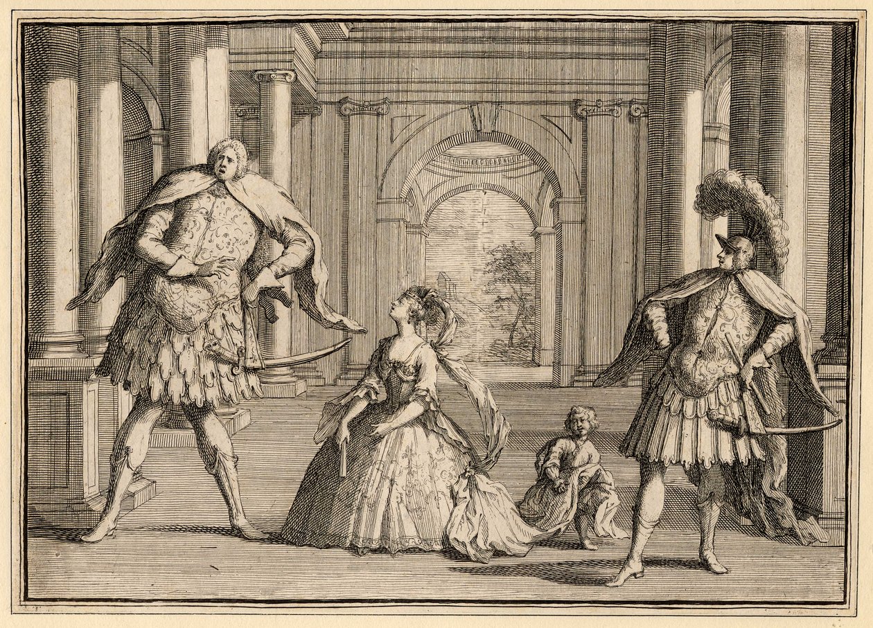 Karykatura wykonania Flavio Haendla z Berenstadtem po prawej stronie, sopranistką Francescą Cuzzoni w centrum i Senesino po lewej(Caricature of a performance of Handel's Flavio, featuring Berenstadt on the far right, the soprano Francesca Cuzzoni in the centre and Senesino on the left)John Vanderbank |