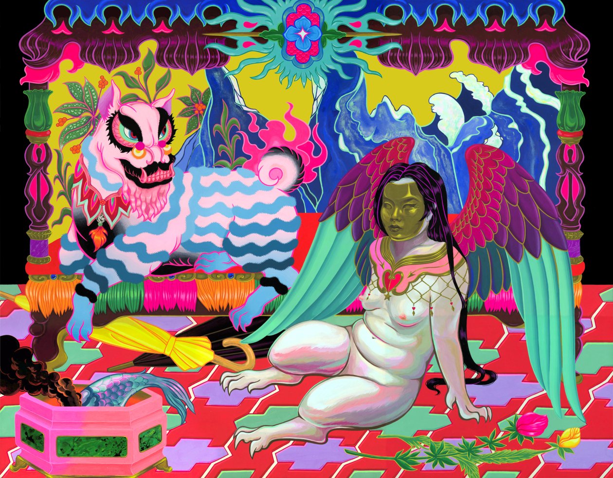 Lew i chimera, 2021 (akryl na desce)(Lion and Chimera, 2021 (acrylic on panel))Kam Tsz |