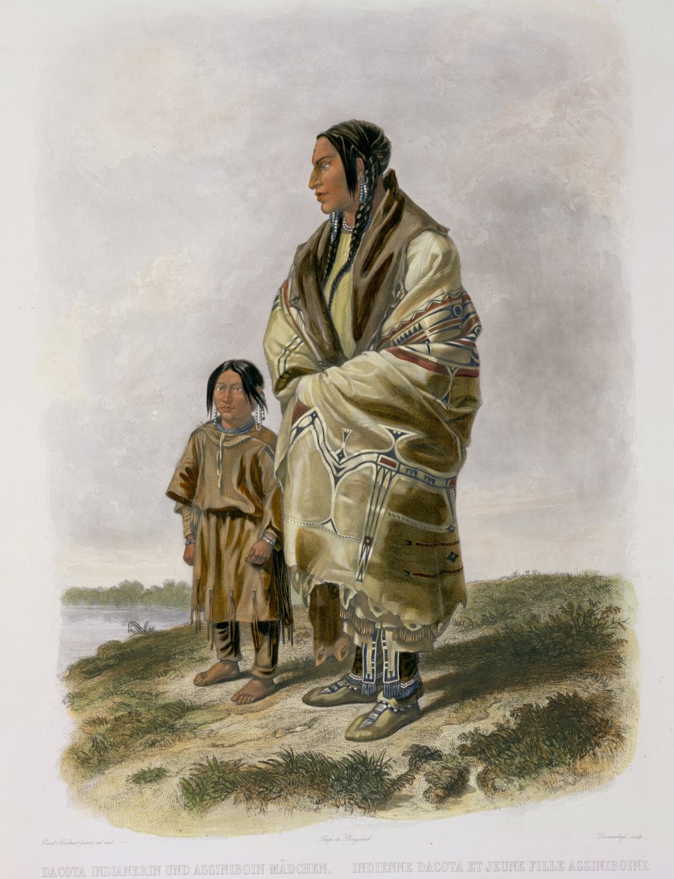 Dacota Woman and Assiniboin Girl, płyta 9 z tomu 2 „Podróże we wnętrzu Ameryki Północnej”, sztych. Narcisse Desmadryl, 1844 (akwatinta)(Dacota Woman and Assiniboin Girl, plate 9 from volume 2 of `Travels in the Interior of North America', engraved by Narcisse Desmadryl, 1844 (aquatint))Karl Bodmer |
