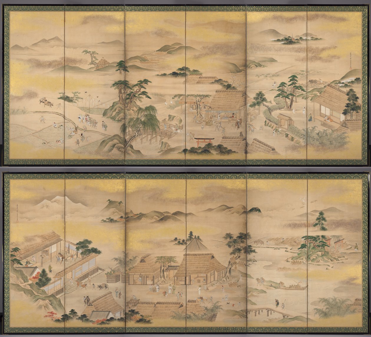 Niedatowane · Pair of six-panel folding screens, ink, light color, gold, and silver on paper