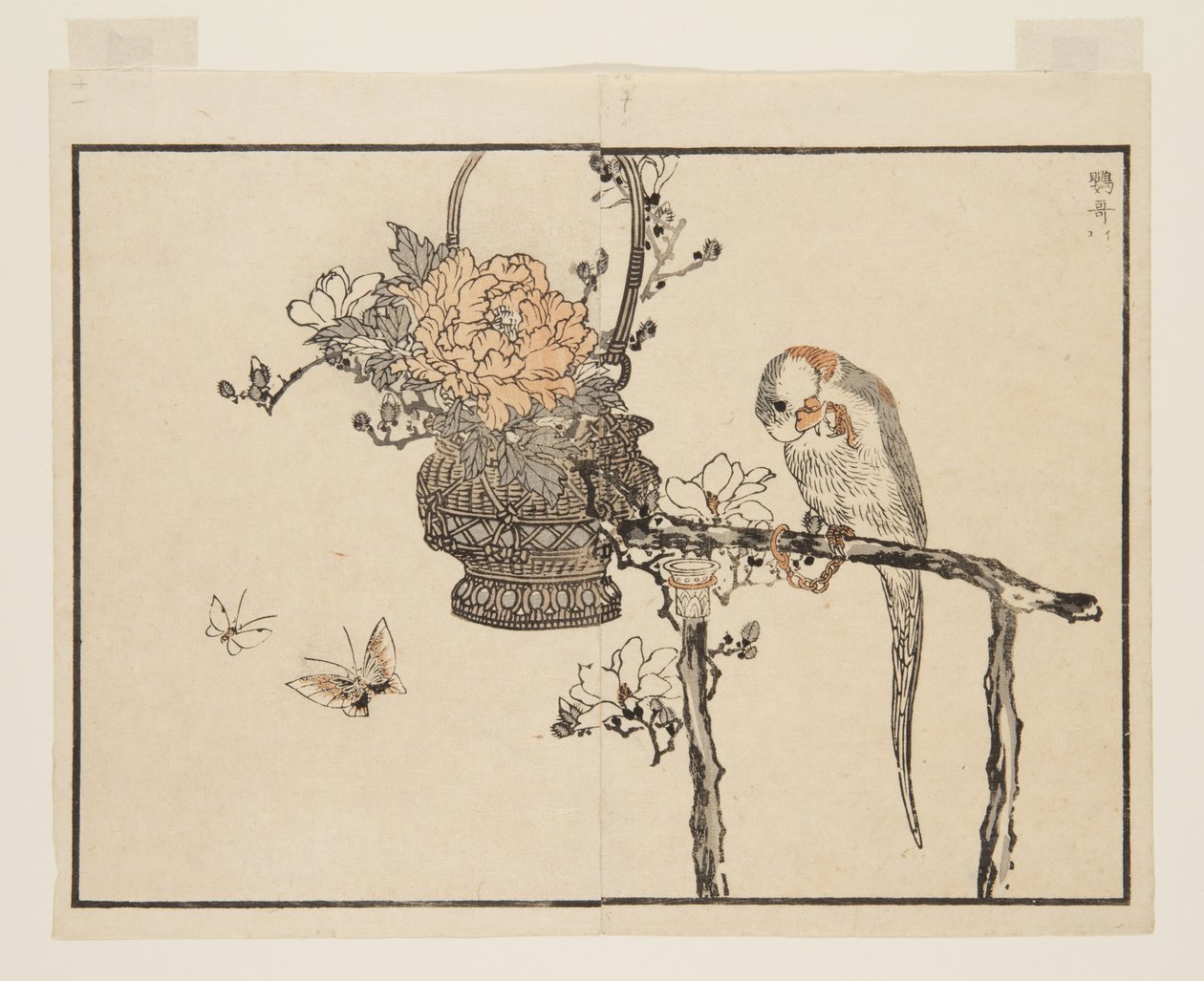 Parrot (Inko) (kolorowy drzeworyt)(Parrot (Inko) (colour woodblock print))Kono Bairei |