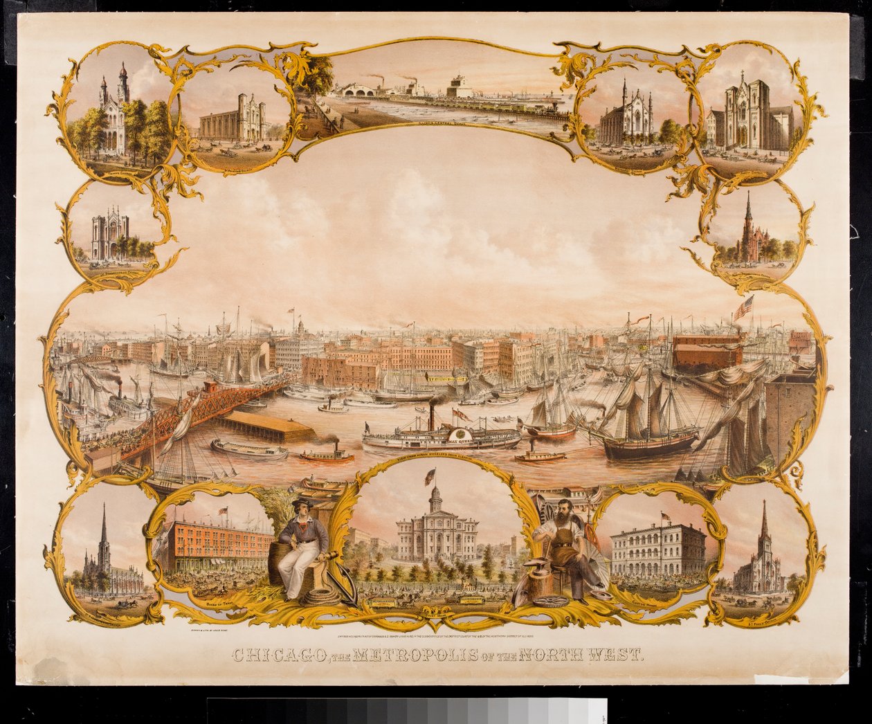 Litografia Chicago z charakterystycznymi budynkami, 1864(Lithograph of Chicago featuring landmark buildings, 1864 )Louis Kurtz |