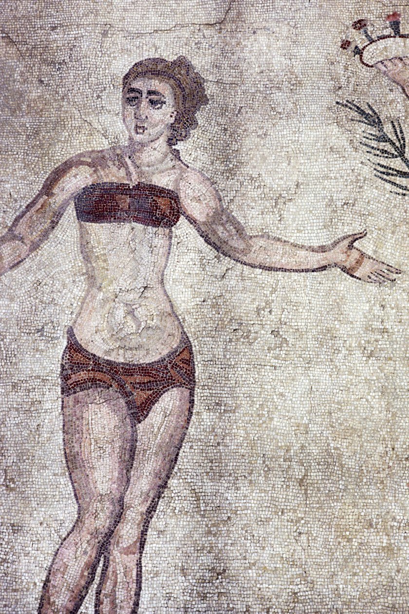 Kobieta w „bikini”, z Pokoju Dziesięciu Tańczących Dziewczyn (mozaika)(Woman in a 'bikini', from the Room of the Ten Dancing Girls (mosaic))Roman |